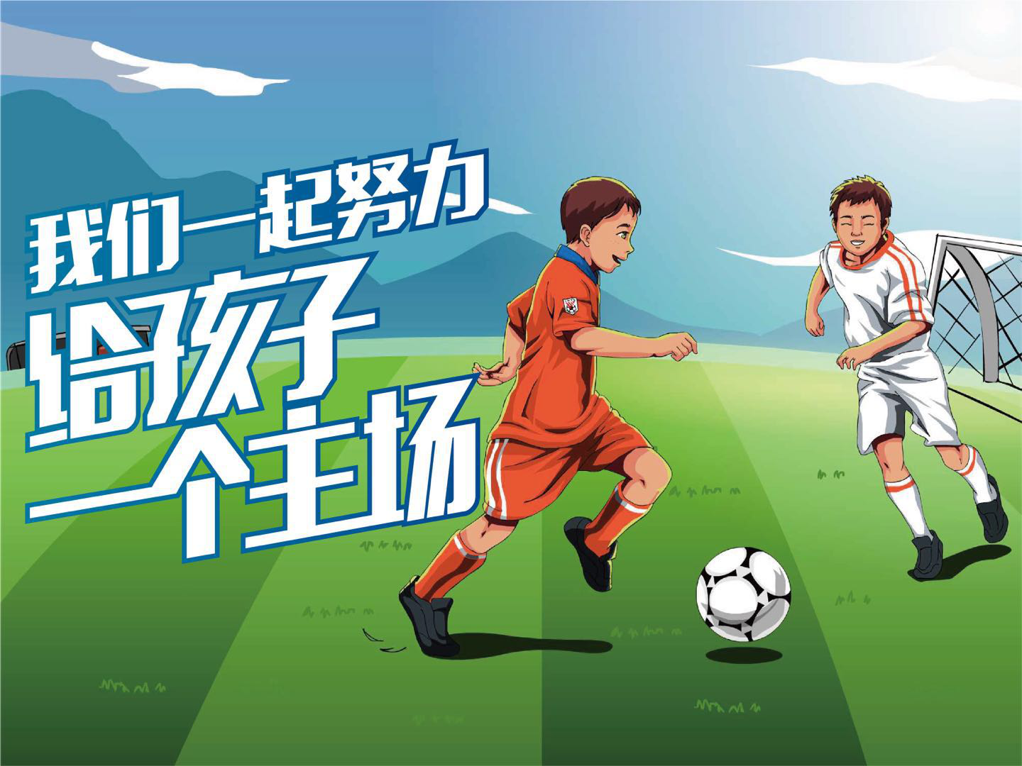 (Tifo第二幅:孩子们在崭新的球场踢球)
