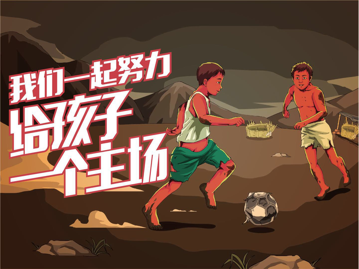(Tifo第一幅:孩子们在破烂的场地踢球)