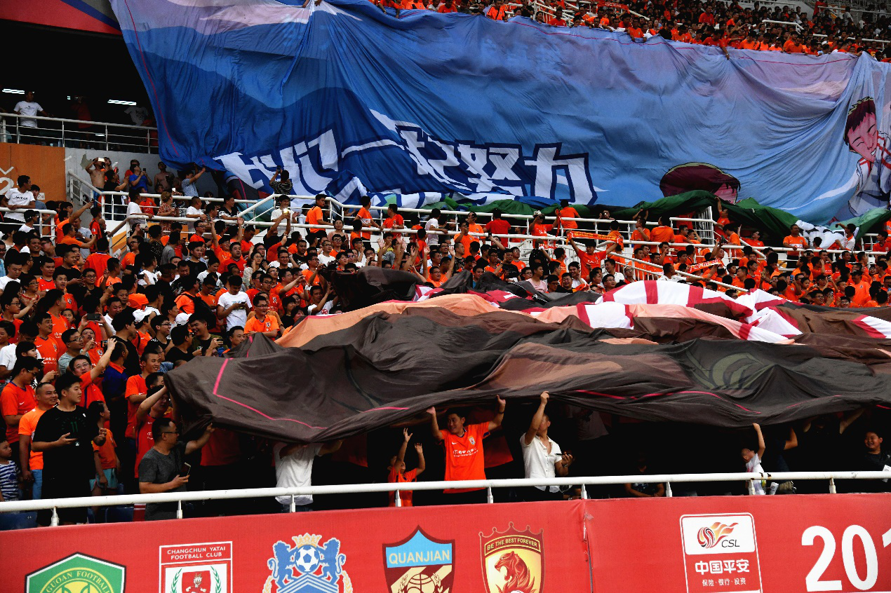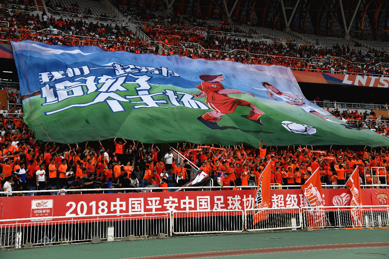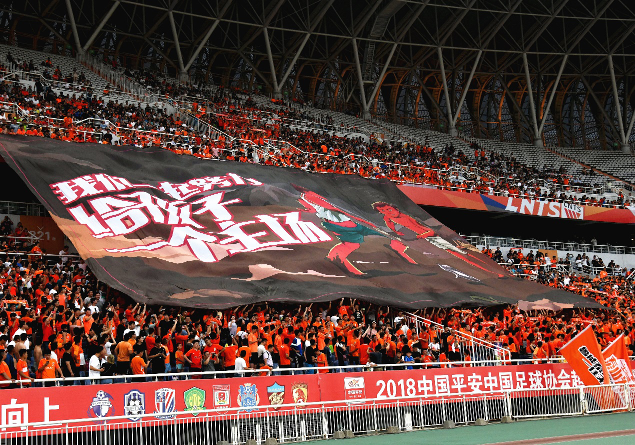 事实上,TIFO作为足球场看台上的独门艺术,绝对是赛场上最能刺激观众肾上腺素的要素之一,欧洲的看台TIFO文化就曾经广为称颂。但今年中超赛场上,山东鲁能和上海上港赛场上会动的TIFO,吸引了一大帮球迷的注意力,双幅切换式TIfo在剥落中形成对比。