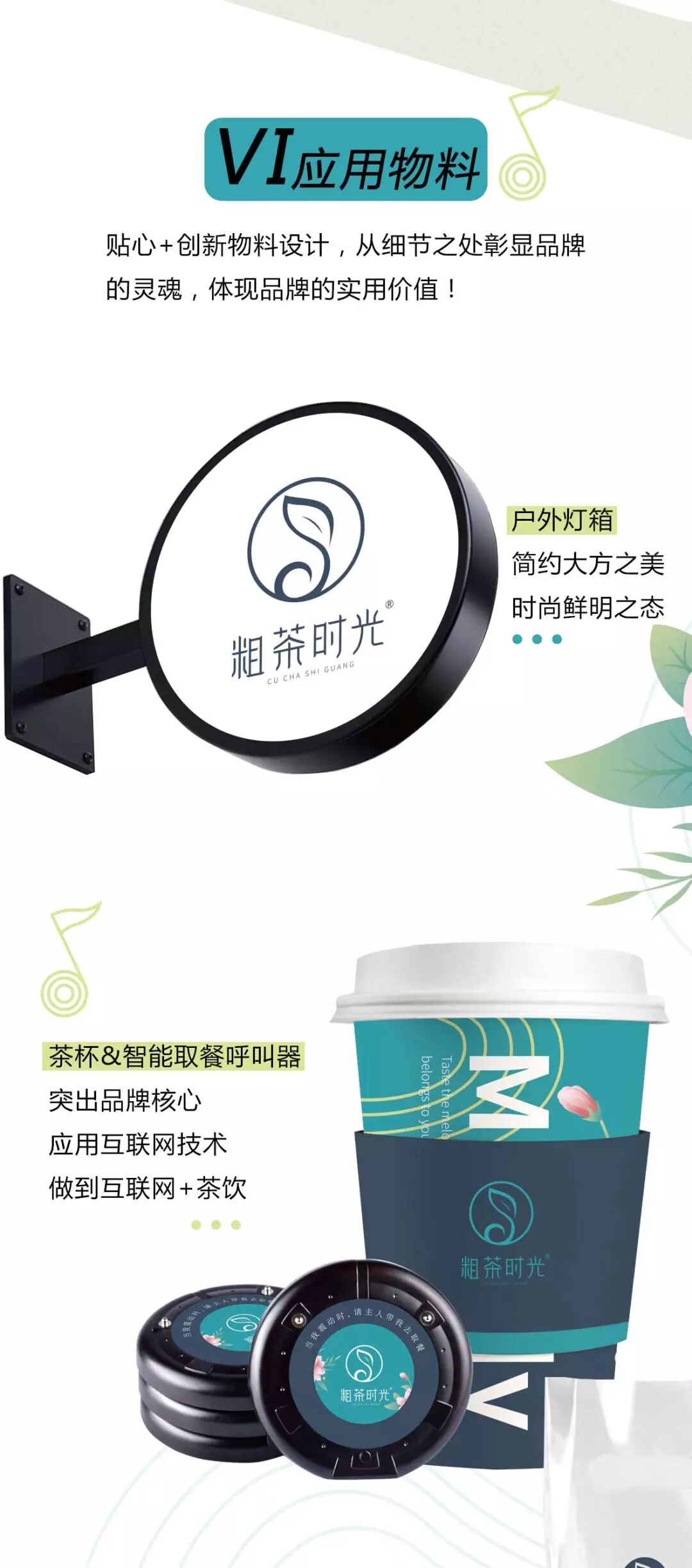 在产品的制作上,粗茶时光结合台湾茶饮和中华茶文化的完美结合。坚持健康制茶,茶叶全是采自各地优质茗茶。是现代年轻人最喜欢的产品,没有之一。闲言少叙,还是让我们欣赏一下粗茶时光的VISI 1 的高大上的设计吧。