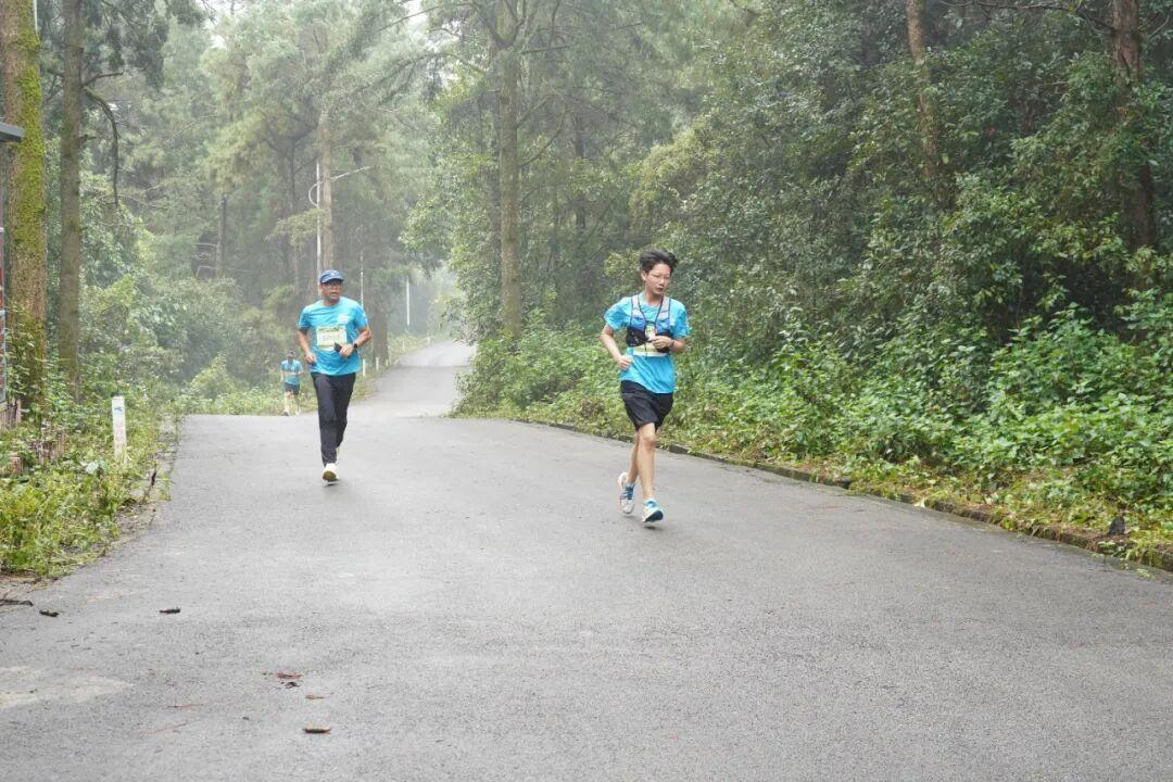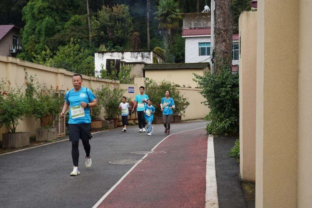 5KM欢乐组的氛围则更为轻松惬意。有家长牵着孩子的小手慢慢跑,不时指着路边绽放的野花、枝头跳跃的小鸟轻声说笑;有好友结伴而行,边跑边举着手机记录沿途风景,遇到标志性打卡点,还会停下脚步合影留念,镜头里的笑容鲜活又灿烂。“这赛道也太舒服了!满眼都是绿色,呼吸的每一口空气都带着甜味。”来自曲靖的跑者李女士边跑边感慨,90% 以上的森林覆盖率让赛道成了天然氧吧,阳光透过树叶缝隙洒下的斑驳光影,更让奔跑变成了一场沉浸式的“森呼吸”体验。途中经过村落时,路边村民的热情挥手与加油声格外暖心,淳朴的乡音让这场越野跑多了份烟火气。