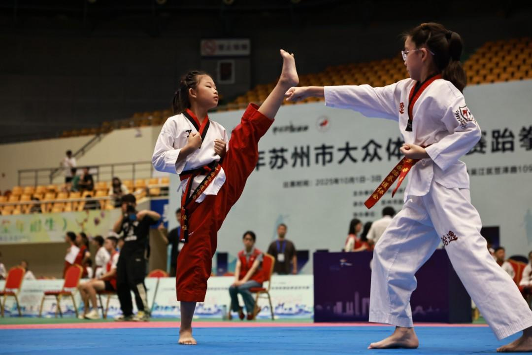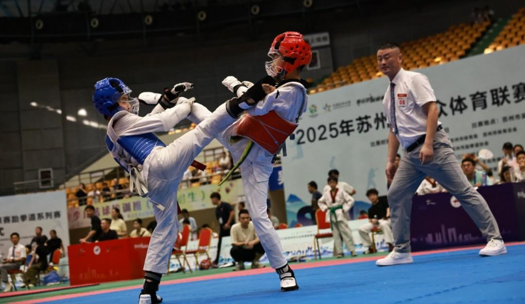 由苏州市体育局、苏州市体育总会主办,苏州市跆拳道协会承办、吴江区跆拳道协会协办的2025年苏州市大众体育联赛跆拳道比赛于10月1日-3日在苏州市吴江区吴江体育馆顺利举行。