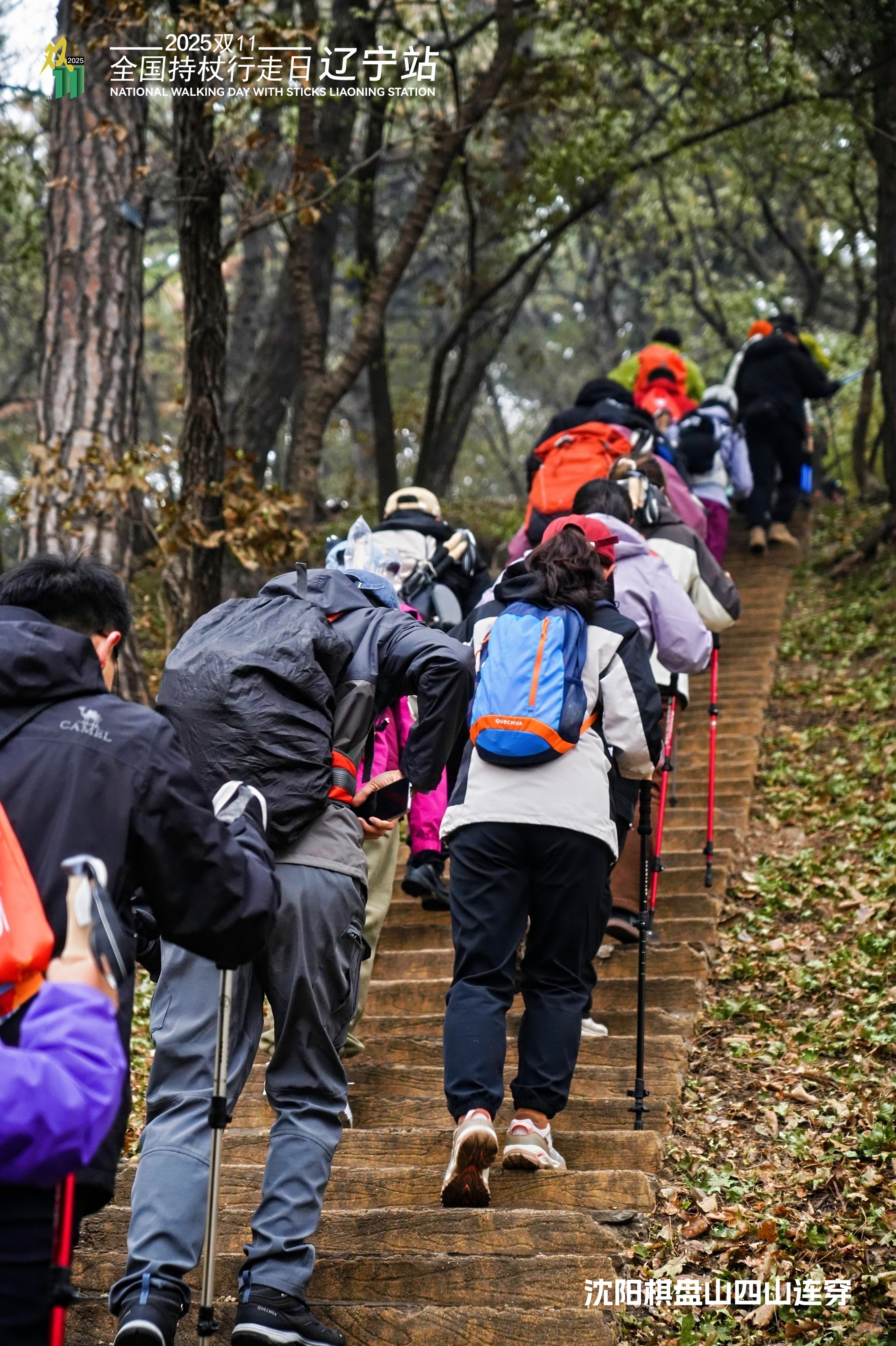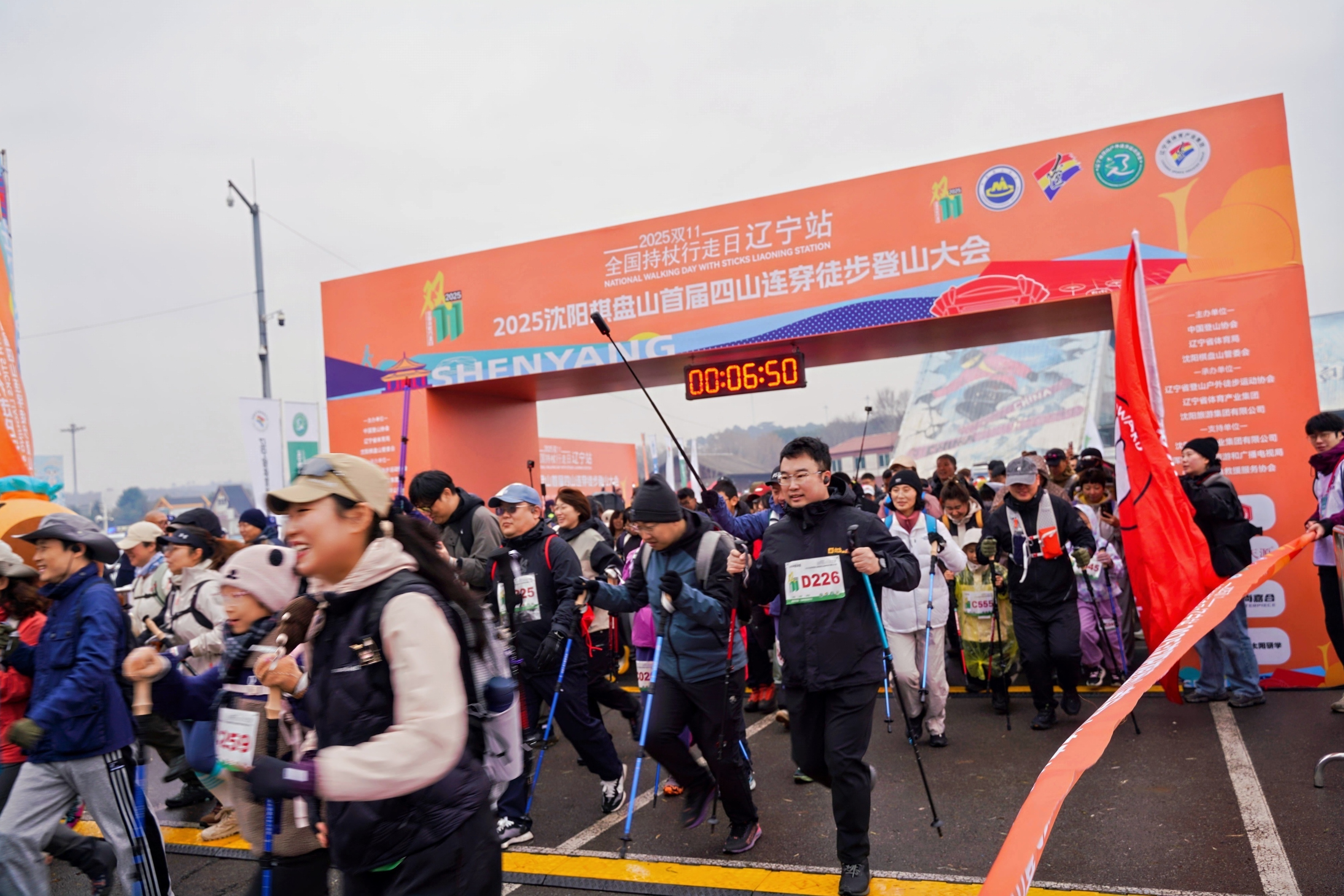 2025年11月8日,“双11”全国持杖行走联动日(辽宁会场)暨沈阳棋盘山首届四山连穿徒步登山大会在沈阳棋盘山风景区顺利举办。本次活动由中国登山协会、辽宁省体育局、沈阳棋盘山管委会等联合主办,吸引2000名户外爱好者参与,以“全民健身,健康中国”为主题,通过8公里健身组、亲子组及20公里挑战组的差异化设置,让不同年龄段人群感受持杖行走的独特魅力。