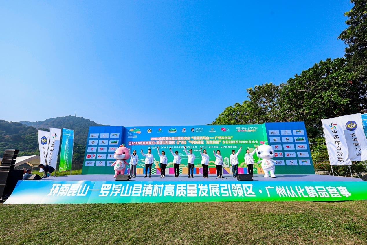为深入贯彻落实全民健身国家战略,推动体育、文化与旅游深度融合,助力环南昆山-罗浮山高质量发展引领区建设,2025全国群众登山健身大会“香港赛马会-广州从化站”暨2026年环南昆山-罗浮山引领区(广州)“千乡兴业 万家纳福”乡村村晚系列活动发布会在2025年12月6日在广州市从化区街口街风云岭森林公园隆重举行。