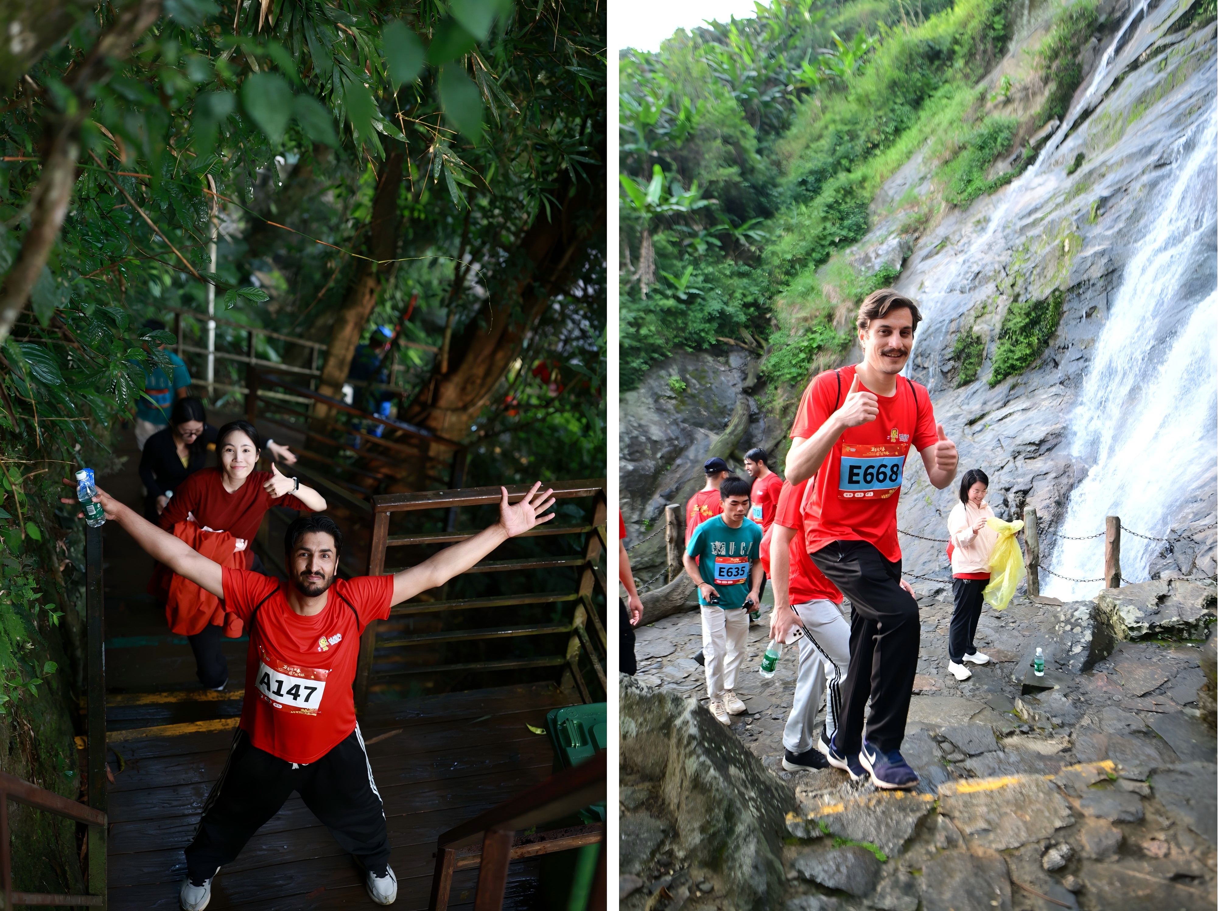 本次赛事设置全程、半程及体验三大组别,并细分不同性别与年龄梯次,兼顾竞技性与全民性,为不同群体跑者提供展示平台。赛事赛道也极具特色,不仅穿越海南落差最大的百花岭瀑布,更深入如诗如画的雨林腹地,沿途随处可见独属于热带雨林的专属景观,其中14公里赛程中海拔累计爬升近900米,被选手们称为“一场高强度的山地攀登考验”,这份极致挑战也成为赛事最具吸引力的亮点之一。独特的雨林赛道与绝美的自然景致,不仅吸引了国内众多越野高手齐聚竞速、角逐荣耀,更凭借琼中丰富的热带雨林生态资源,吸引了国际友人参与其中,在奔跑中感受中国雨林的独特魅力,以运动为媒,搭建起中外文化交流的桥梁。
