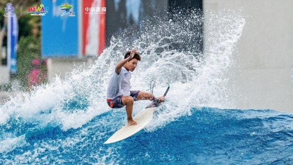 本次赛事在中旅逐浪度假区人工冲浪池举行。该冲浪池作为国内首个奥林匹克级人工造浪设施,采用先进气动造浪技术,可精准模拟23种不同浪型,浪高调节范围覆盖0.3米至2.7米,打破了自然潮汐与天气的限制,为参赛小将提供了全天候、稳定公平的专业竞技环境,让每一位选手都能充分发挥自身技艺与潜力,也有力保障了赛事的专业性。