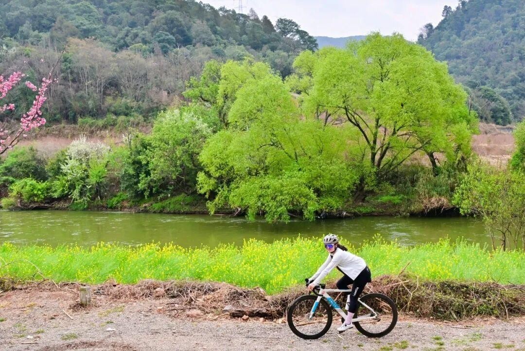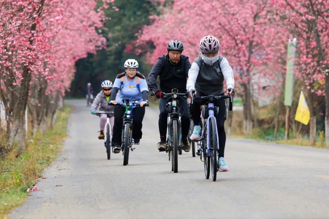 本次活动从玉龙湾出发,最终抵达青龙峡,全程约58公里的环线赛道堪称“春日限定画卷”。骑友们分批次踏上征程,沿途不仅有湖光山色与峡谷野趣,更邂逅了春日最美的馈赠——樱花隧道与千亩油菜花海粉色与金黄交织骑行其中,仿佛穿梭于流动的光影画廊。
