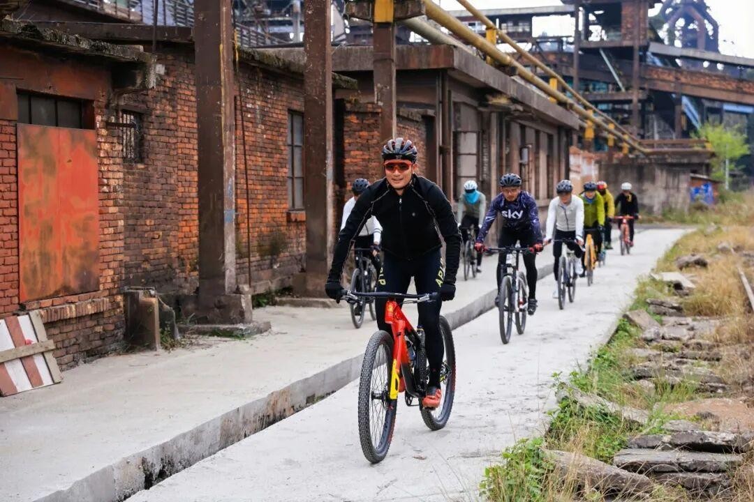 在昆钢工业遗址,不少骑手停下来打卡。这里是热播剧《好好的时光》取景地,斑驳的厂房与春日骑行的人群形成奇妙的对比。