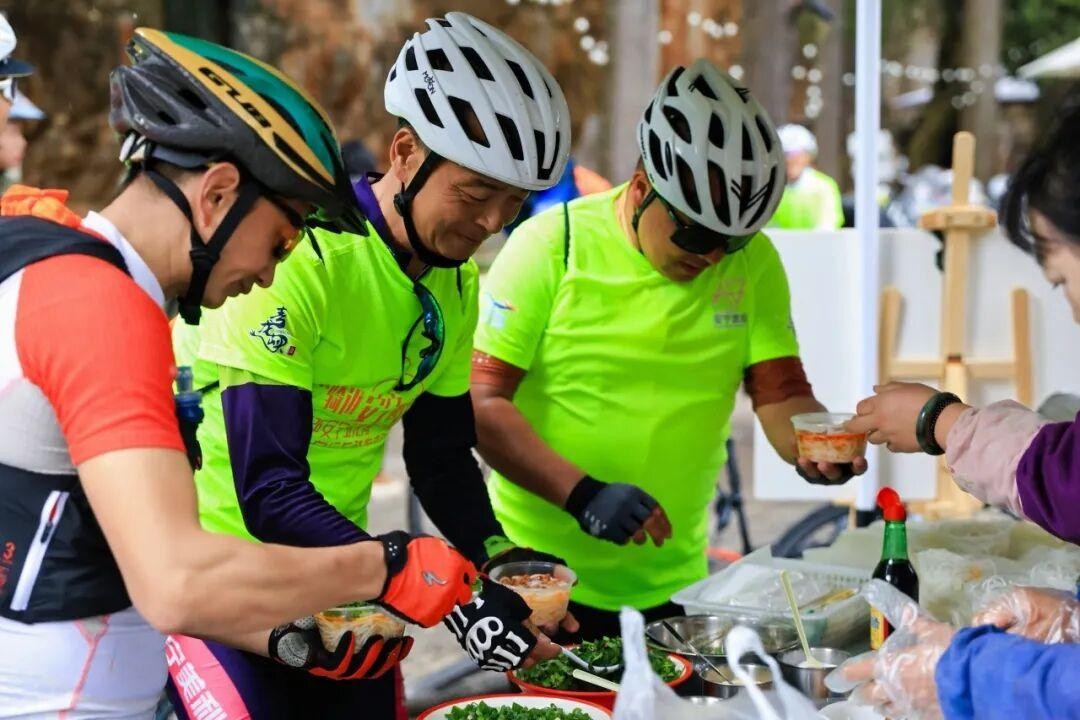 除了美景与互动,组委会还在赛道沿途设置了多个补给点,为骑友们及时补充能量。矿泉水、新鲜水果、米线等一应俱全,志愿者们热情地为每一位经过的骑友递上补给,并送上鼓励的呐喊。医疗点也全程待命,为活动安全保驾护航。
