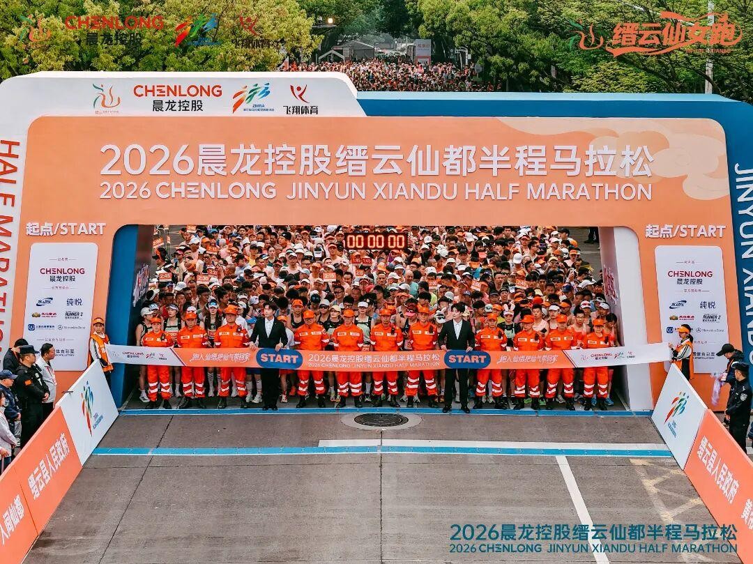 4月19日上午7:00,2026晨龙控股缙云仙都半程马拉松在缙云县行政中心广场鸣枪开赛。来自全国各地的跑者齐聚“黄帝缙云、人间仙都”,以奔跑丈量山水,在21.0975公里的赛道上,开启一场速度与诗意交融的奔跑盛宴。