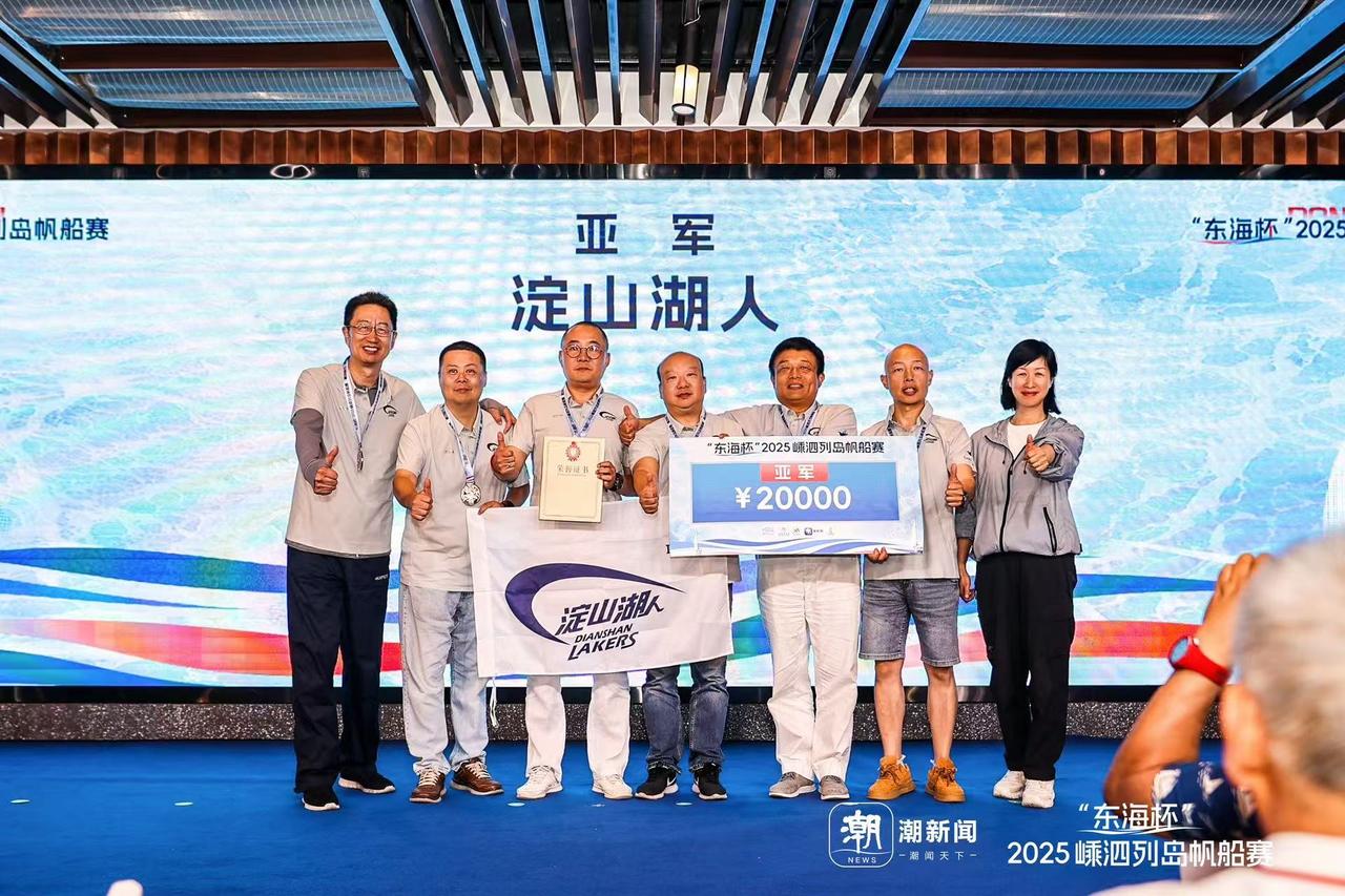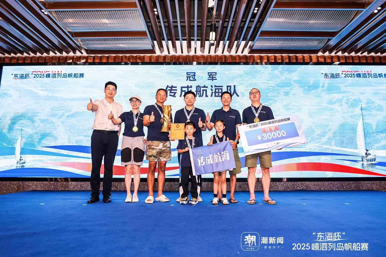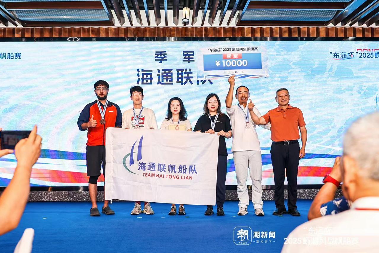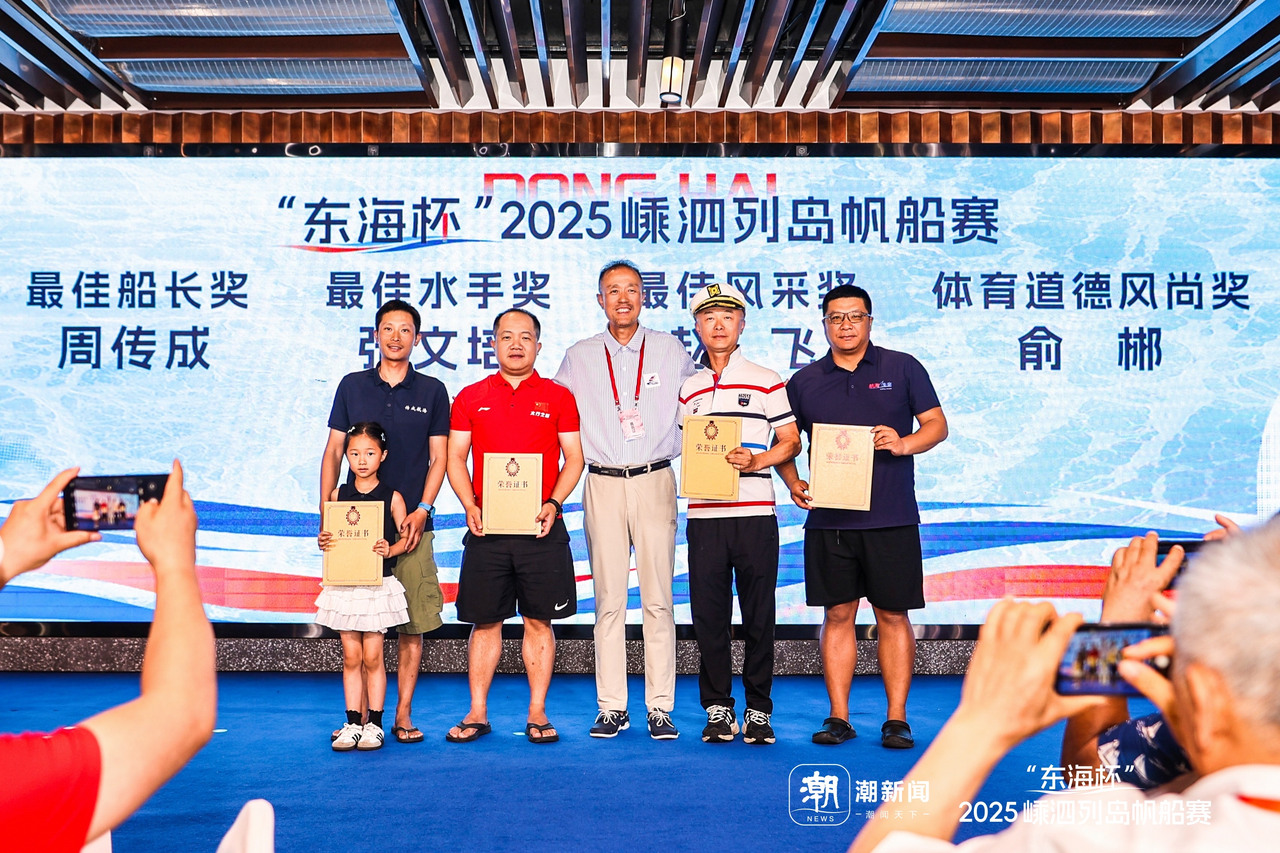 在随后举行的“东海杯”2025嵊泗列岛帆船赛颁奖盛典上,各参赛队伍依次加冕荣誉。奖杯和奖金不仅象征着船员们在海上的拼搏与努力,更凝聚着每一位队员搏风击浪、奋勇向前的努力与坚持。中共嵊泗县委常委、常务副县长李进城为冠军颁奖。