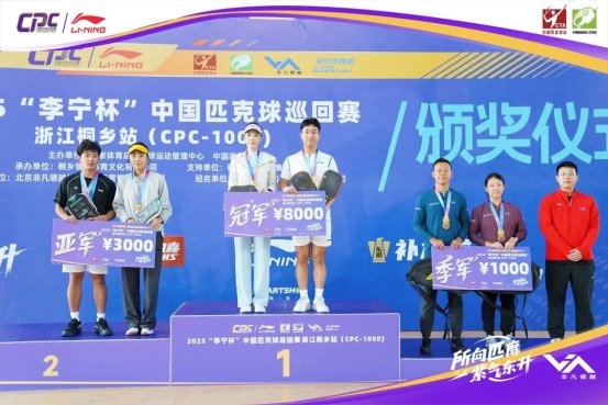 来自广东的许严和搭档欧阳波拿下本次巡回赛的常青组男子双打冠军。赛后,许严表示:“这是我第一次来桐乡参赛,很高兴来到这里,球场的氛围和设施真的很棒。” 作为资深匹克球运动员,他曾先后斩获 2025 “李宁杯” 中国匹克球巡回赛东营站(CPC-1000)、西安站常青组男双冠军。