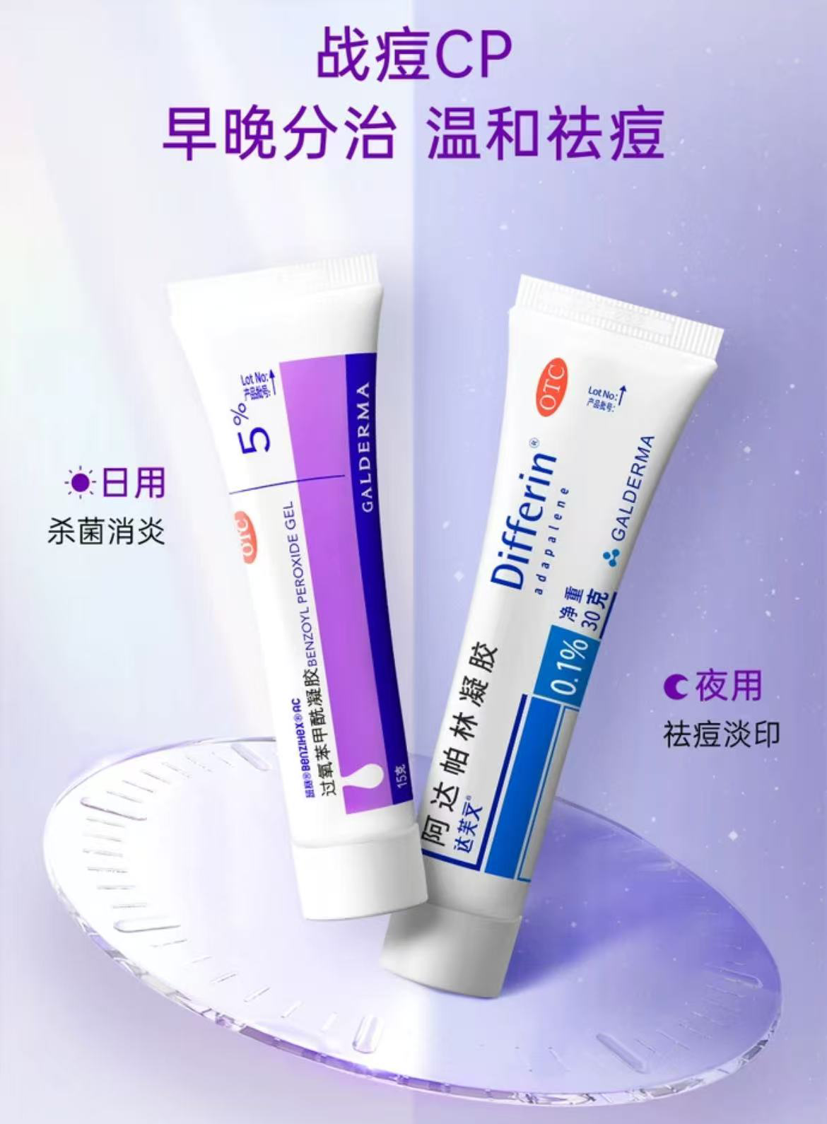 班赛(过氧苯甲酰)与达芙文(阿达帕林)组成的祛痘CP,通过“日间抗菌+夜间修护”的科学协同,实现快速祛痘与长效维稳的双重效果: