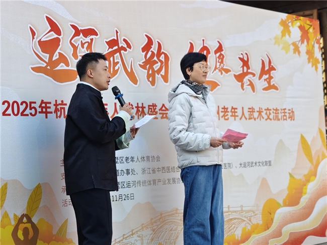 拱墅区老年人体育协会副会长兼秘书长谢建英女士在接受采访时表示,本次盛会不仅是一场武术交流展演,更是拱墅区老体协始终将全民健身作为“健康杭州2030”核心篇章,践行“人民的运河”理念的生动写照。