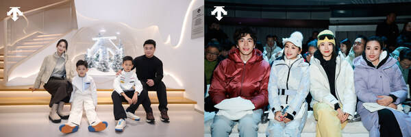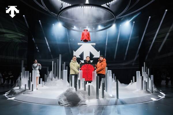 大秀走秀环节接续上演,以科技为翼勾勒全景运动图景,四大核心装备系列依次亮相。从彰显专业巅峰的国家队系列、贴合滑雪运动核心需求并融入匠心的单双板场上和场下装备,到融合非遗文化的香云纱系列、凝练匠心与机能美学的 ALLTERRAIN 系列,再到与艺术家 Daniel Arsham 联手打造的联名系列,全面覆盖专业运动与都市生活多元场景。期间,迪桑特签约运动员周苡竹领衔一众儿童模特身着儿童滑雪系列惊喜登场,萌趣中尽显冰雪运动的新生代活力。他们牵引迪桑特品牌代言人步入秀道,将"未来力量"与"专业领航者"在同一时刻连接,共同完成大秀高潮的递进。当三位代言人来到舞台中央,全场灯光随之开启最终章节的点亮,30套走秀造型悉数回归,构成整场大秀最具视觉张力的全景画面。它们集中展现各系列在性能突破、结构创新与机能美学上的核心优势,完整勾勒出迪桑特凭借多元产品实力,向"问顶未来"稳步迈进的进阶之路。