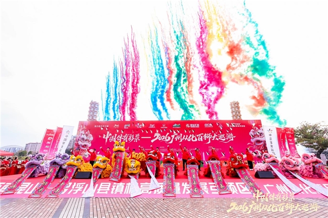 醒狮腾跃贺新岁,骏马奔腾启丰年。“中国体育彩票”2026广州从化百狮大巡游及传统南狮争霸赛于2月7日在金瓯广场盛大启幕!作为从化区新春标志性活动,本次盛事规格升级,208头特色龙狮,阵容强大,包含传统南狮、猫头狮、鸡公狮等。活动旨在继承和弘扬中华民族优秀传统文化,以“体育+非遗”融合的形式,积极探索“农商文旅体”深度融合的发展路径,打造一场兼具观赏性、文化感与年味儿的新春盛宴,为“百千万工程”和环南昆山—罗浮山县镇村高质量发展注入新动能,是从化区“百千万工程”三年初见成效的生动案例。