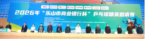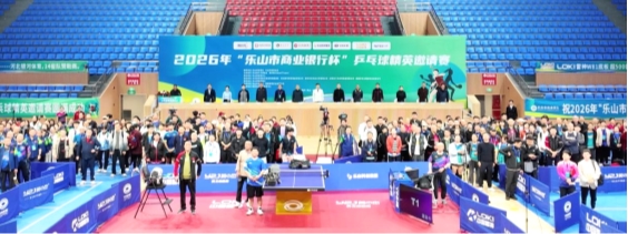 春满三江,乒动乐山。3月28日上午,2026“乐山市商业银行杯”乒乓球精英邀请赛在乐山市体育中心正式拉开帷幕。中国乒协裁委会副主任、四川省乒协党支部书记代天云,四川省乒协常务副主席、奥运冠军陈龙灿,四川省乒协顾问陈云华,亚洲乒乓球职业大联盟监事宋明智,四川省乒协党支部领导、成都市乒协主席陈琳,博乒网运营总监陈飞禧,乐山市政协主席、党组书记黄平林,乐山市委常委、市政府副市长冯彬,乐山市体育局局长李志强,乐山市体育总会秘书长章文权,乐山市商业银行党委副书记、工会主席刘伟宏,乐山科创产业投资(集团)有限公司党委副书记、总经理荣霞,四川峨眉雪芽茶业有限公司副总经理袁野,乐山市乒乓球协会会长陈贞豪等领导和嘉宾出席开幕式,与来自全国各地56支队伍共500余名运动员和观众共同见证赛事的盛大启幕。