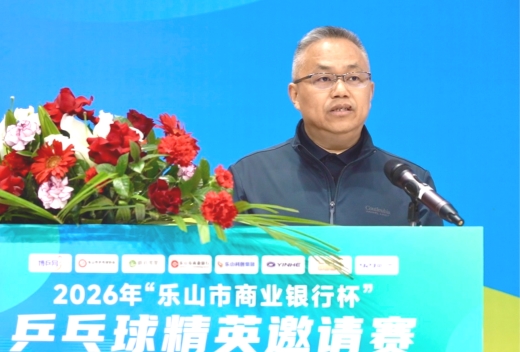 开幕式上,乐山市委常委、市政府副市长冯彬发表致辞,对赛事的成功举办表示热烈祝贺。他表示,乐山不仅是坐拥乐山大佛、峨眉山双世界遗产的山水名城,是孕育跷脚牛肉、甜皮鸭等非遗美食的烟火之都,更是一座崇尚运动、充满活力的城市。本次赛事以球为媒,将“国球”竞技的激情与乐山的山水人文深度融合,既为全国乒乓爱好者搭建了切磋技艺、以球会友的优质平台,也让大家在比赛之余,能够沉浸式体验嘉州大地的自然之美、人文之韵与市井之味。