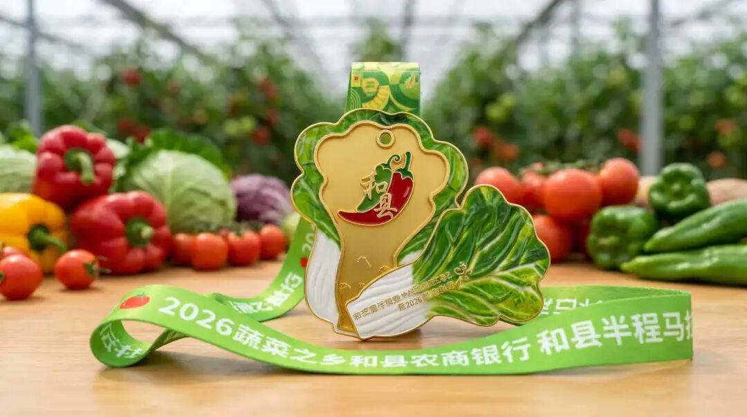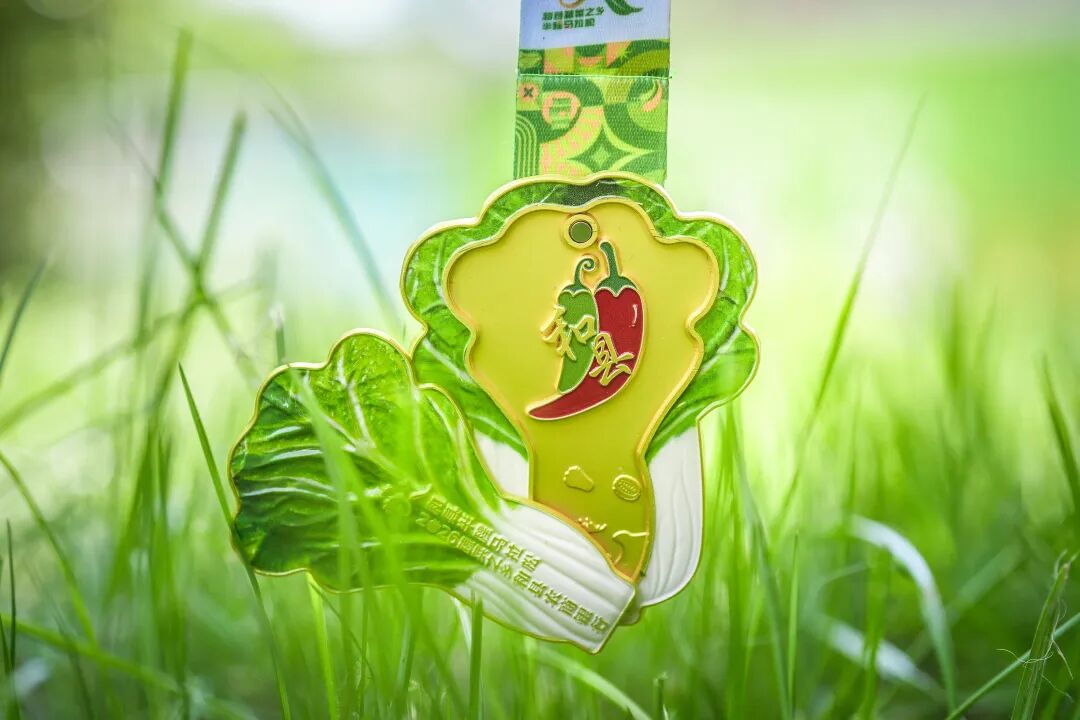在全场观众的欢呼声中,选手们陆续冲过终点线。“百财纳福”主题完赛奖牌也随之亮相,奖牌造型取自和县标志性蔬菜——大白菜,圆润饱满,满载美好寓意。轻轻拨开叶片,一枚火红的辣椒造型磁吸冰箱贴跃然眼前,为每一位完赛者,珍藏和县半马的“火热”回忆。
